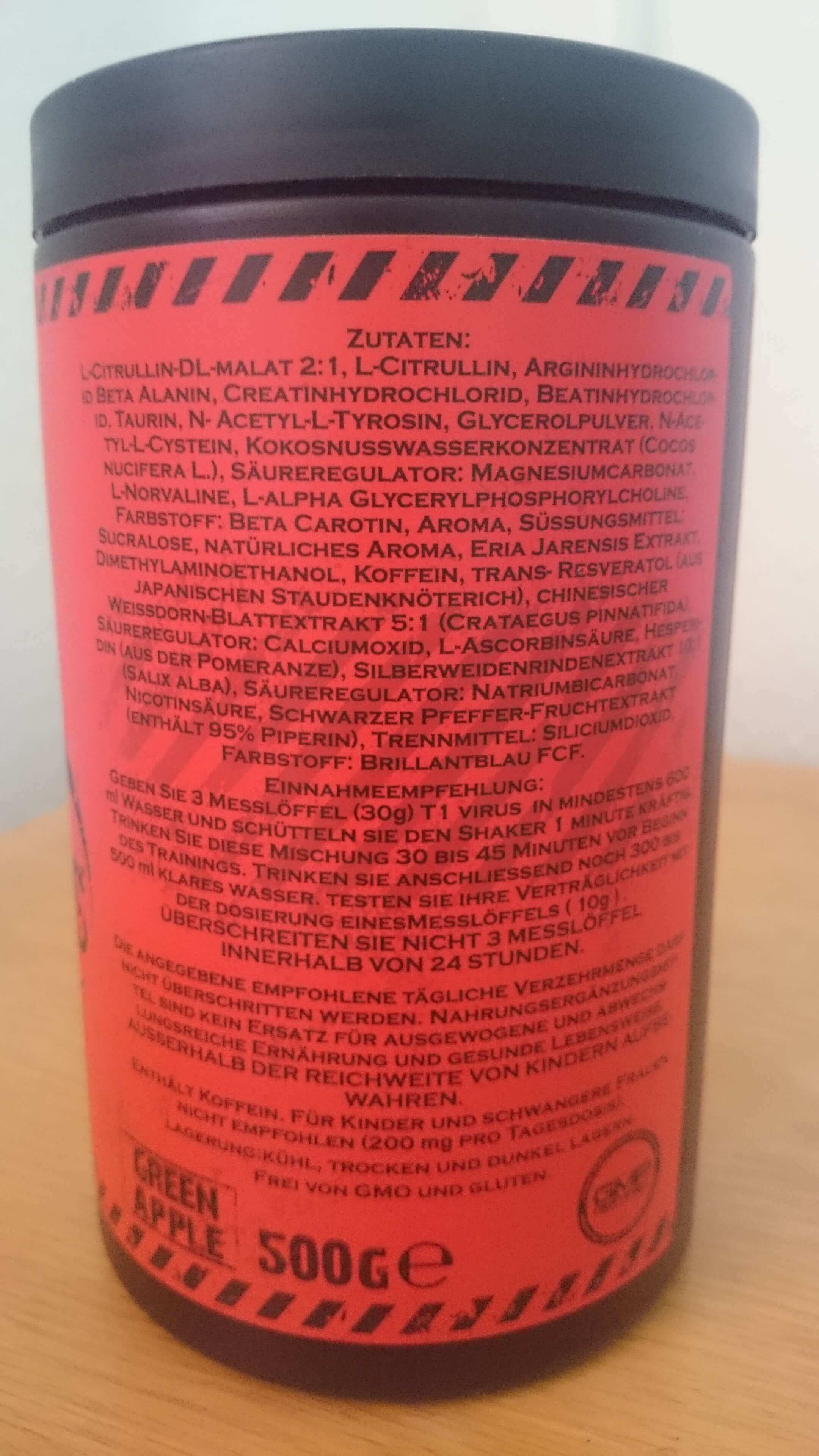 GN hat mit T1 Virus einen Booster herausgebracht, der alle Aspekte des Bodybuilding abdeckt (Inhaltsstoffe für die Kraft, Ausdauer, Hydration und Fokus). Die Dosierungen liegen entweder an der klinischen Dosis oder darüber. Man bekommt für sein Geld die maximal Dosis an aktiven Inhaltsstoffen. Es gibt momentan kein einzigen Hardcore Booster auf dem Markt, der soviel bietet wie T1. Stack3d krönte T1 zur Nummer 1 unter allen Booster, was ich zum teil mit befürworte.