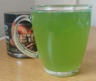 Es gibt fünf Geschmacksrichtung: Area51, Dragons Mist, Krusherz, Isee Fury und Lions Blood. Unter den Namen kann man sich nichts vorstellen, nach was es schmecken soll. Ich hatte die Geschmacksrichtung Area51. Der Geschmack lässt sich am ehesten mit Trolli Saure Fruchtgummis beschreiben. Säuerlich, süßer Geschmack gepaart mit einem schwer definierbaren, angenehmen Aroma. Leider gibt es einen leicht bitteren Nachgeschmack. Die Löslichkeit ist einwandfrei. Es schwimmen zwar kleine, weiße Partikel herum, die sicherlich vom L-Citrullin kommen, aber diese kann man nicht vermeiden. Das Pulver ist sehr fein und hat eine rötliche Farbe. Das angemischte Getränke hat einen Namens gerechten grüne Alien Farbe.